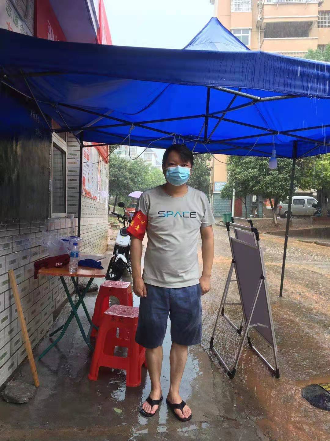 8月10日,天降大雨,公司党员群众值守在盛德社区5个小区7个门岗、三粮库、国储库、直属库库区及小区、产业园工地上,冒雨值守,衣服鞋子尽湿,用行动践行为民服务的初心,守护群众生命安全。