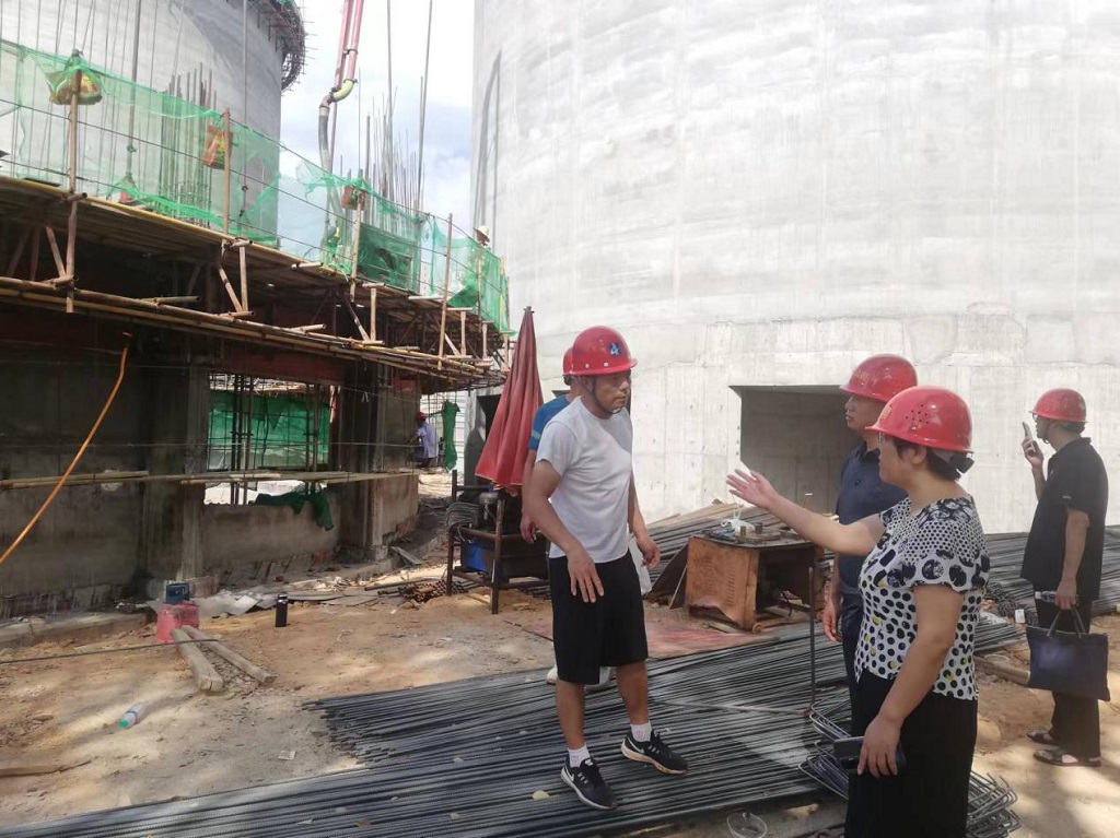 10月4日上午,市粮食局党组书记、局长张菊花到浅圆仓项目现场督导项目建设进展情况。新粮公司党委副书记、常务副总经理曲爱民陪同督导。浅圆仓项目部)
