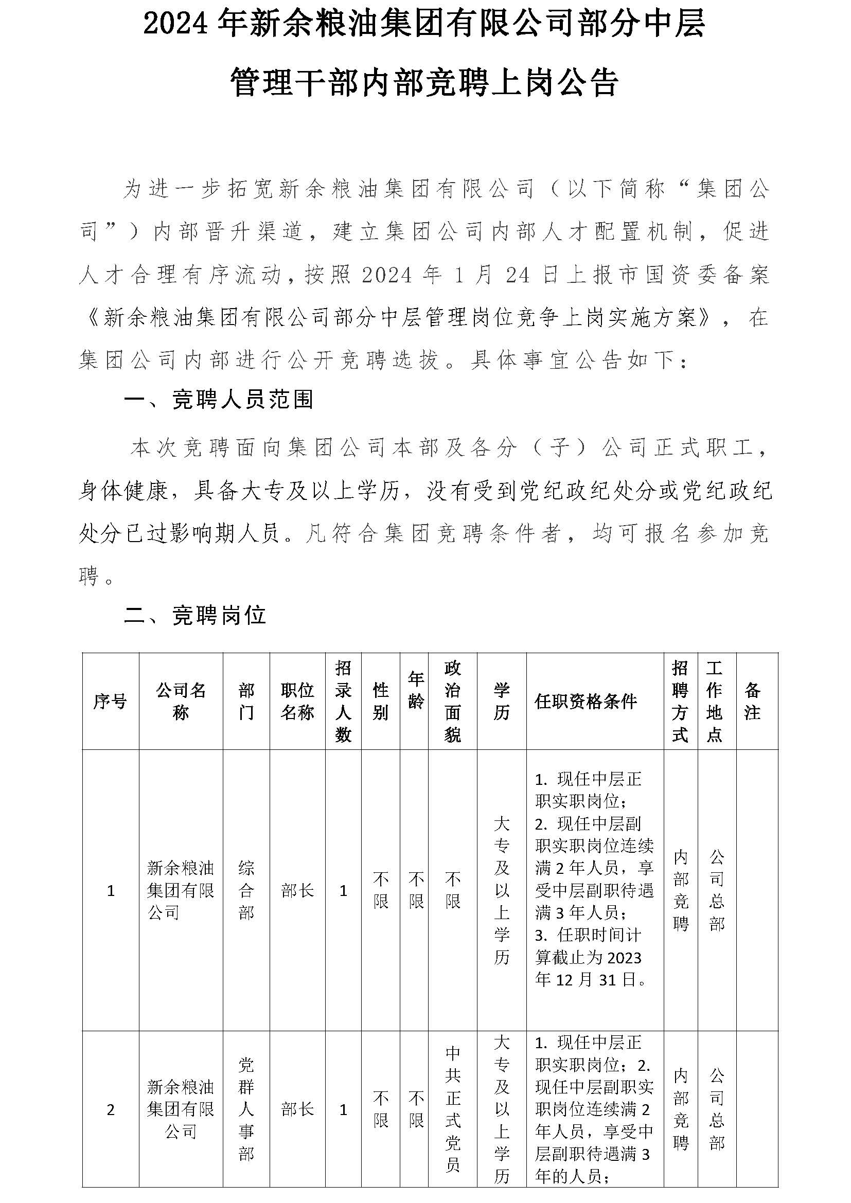 内部竞聘上岗公告