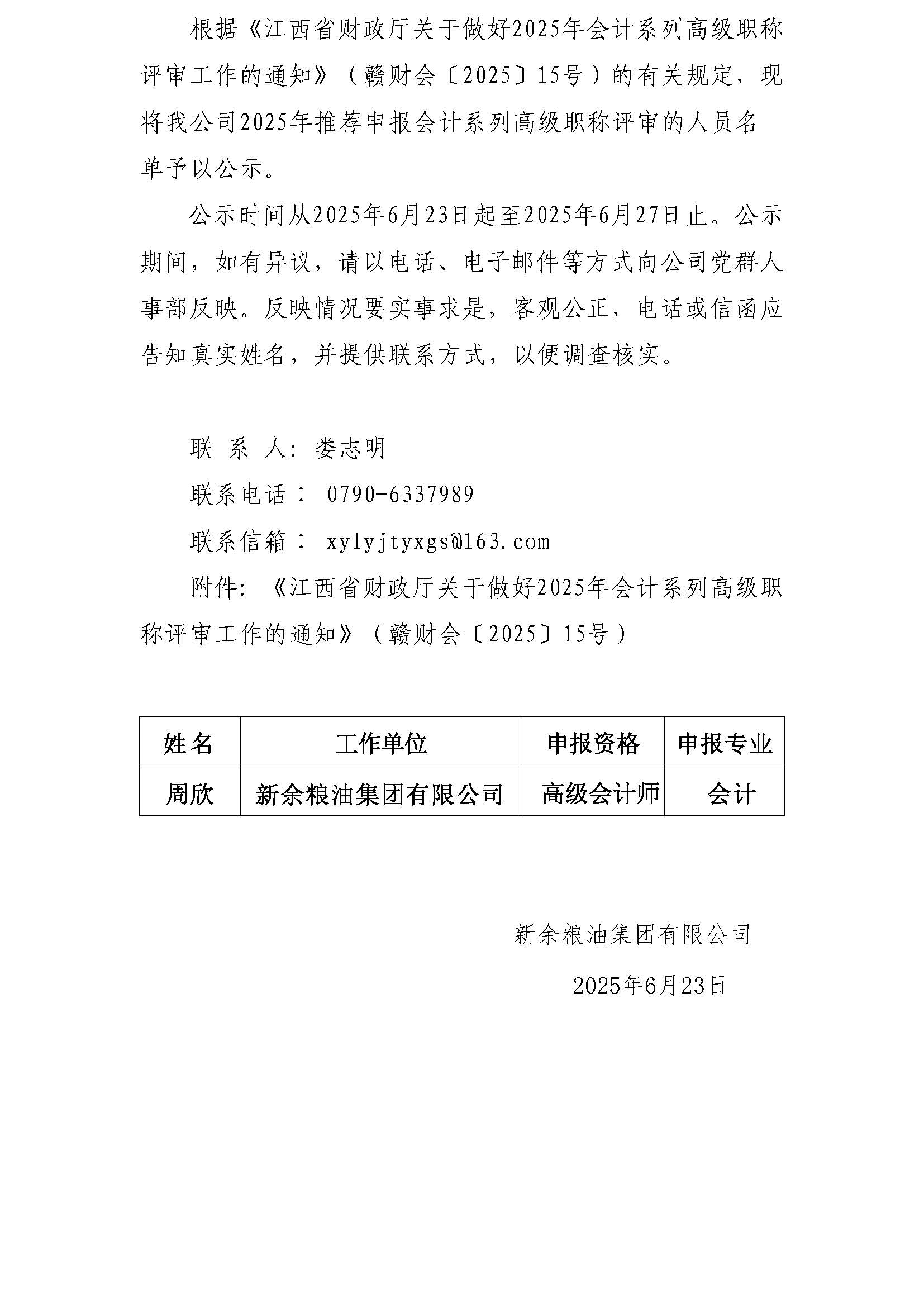 职称申报推荐公示