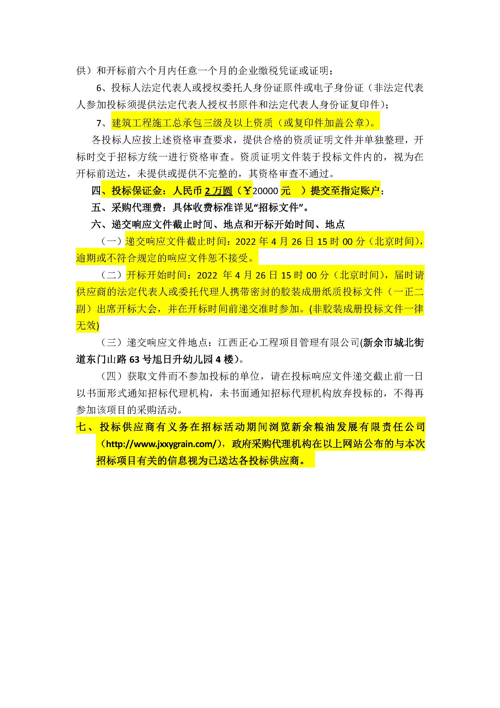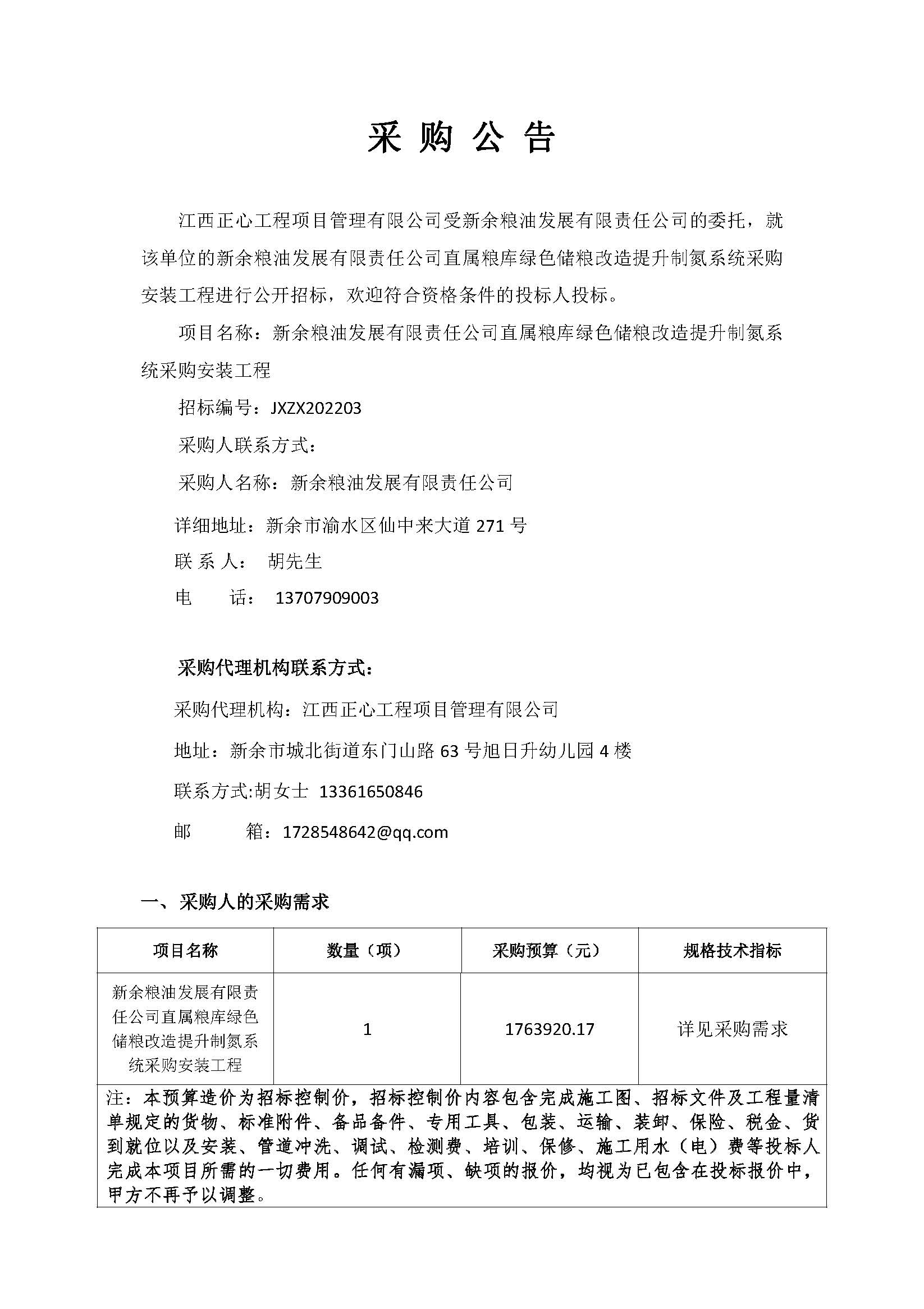 新余现代粮食产业园粮库绿色储粮改造提升制氮系统采购安装工程公告