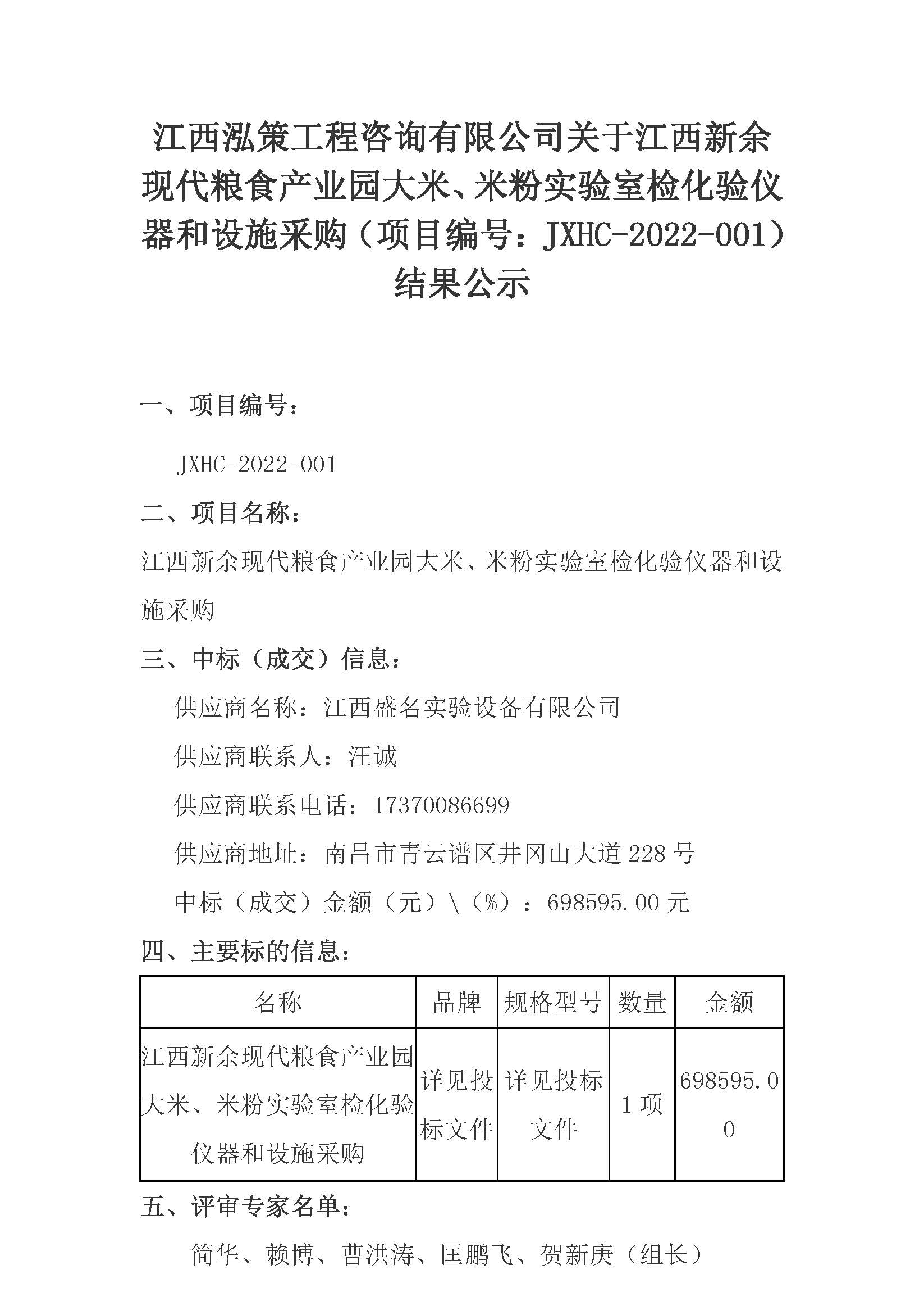 采购结果公示