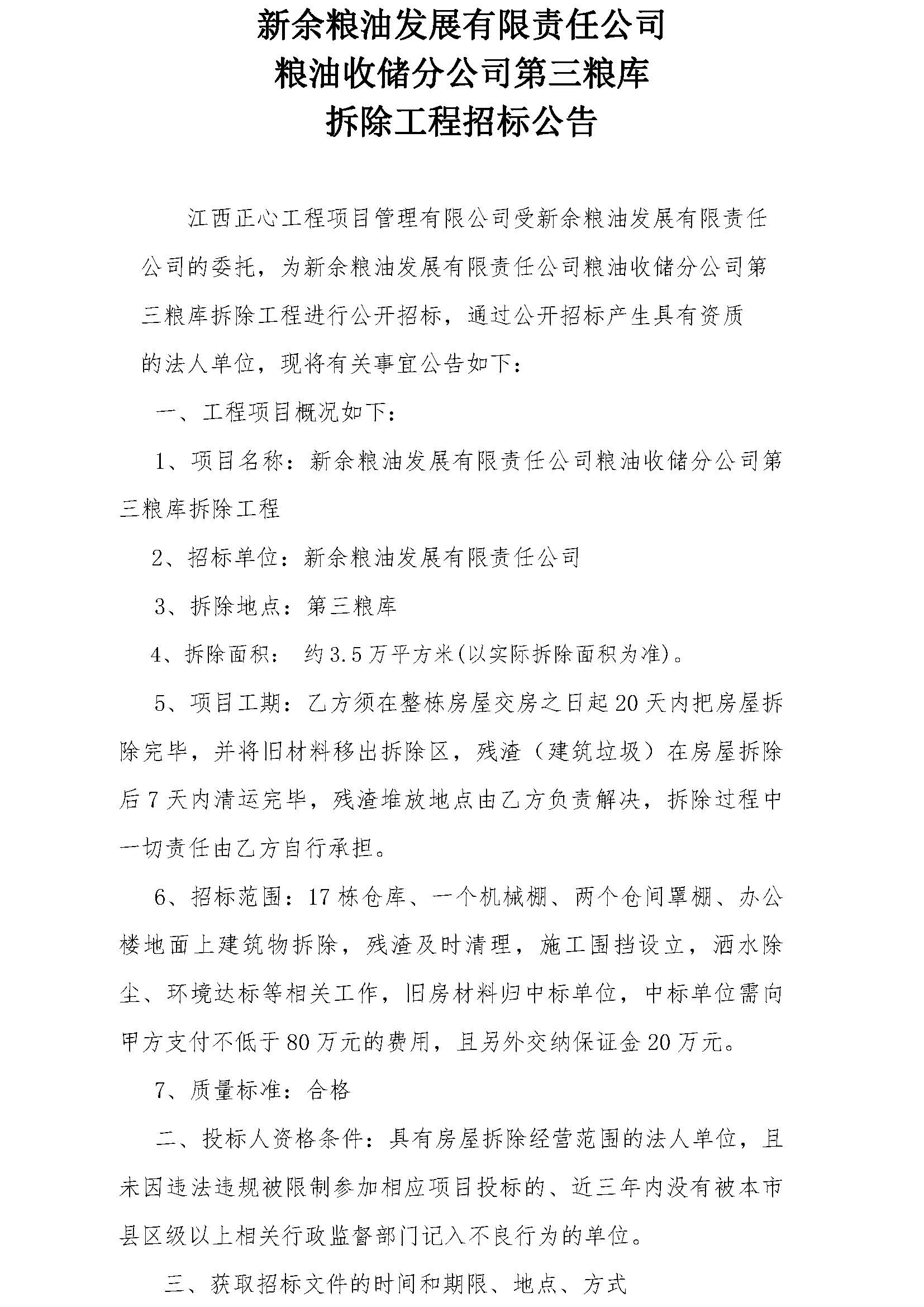 粮油收储分公司第三粮库拆除工程招标文件