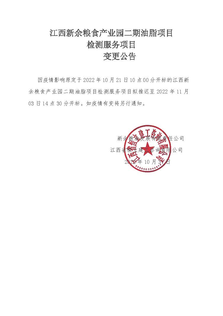 江西新余粮食产业园二期油脂项目变更公告