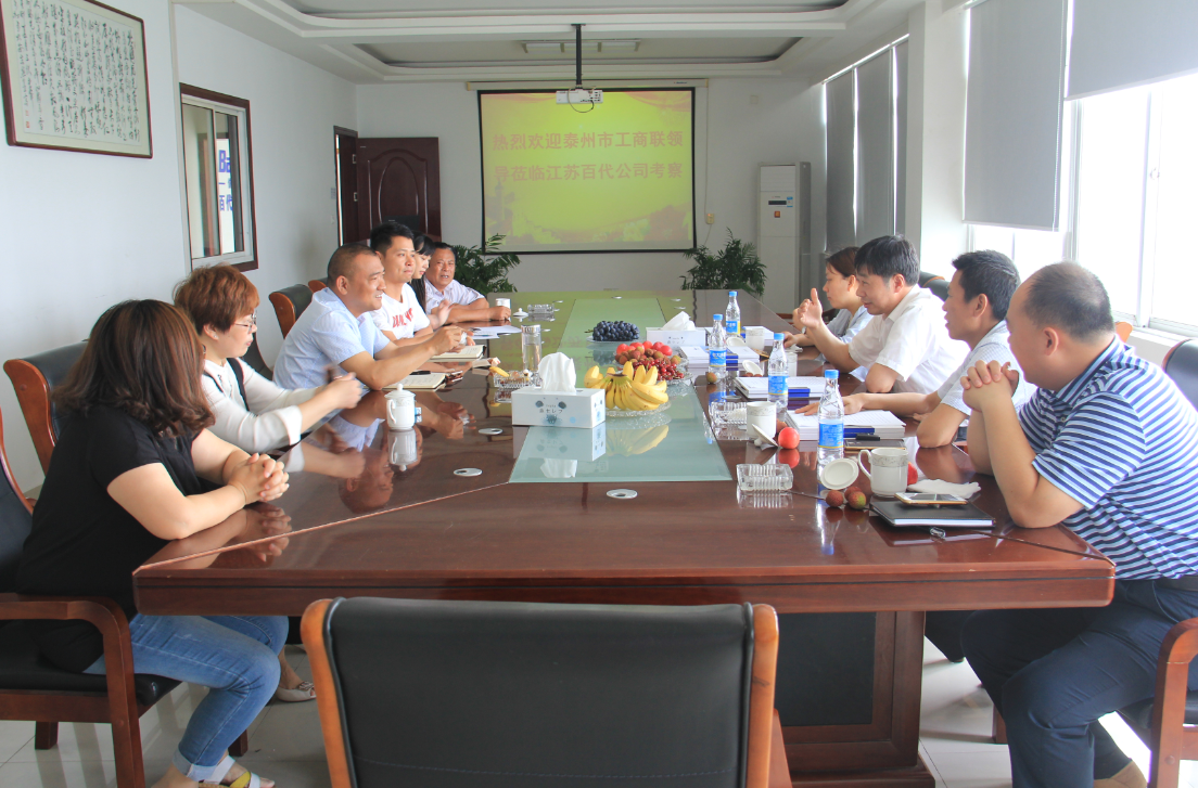 2017年6月8日百代迎来重要领导,泰州市海陵区工商联于勇主席、沈建萍等诸位领导,百代总经理沈阳先生、董事长王芹、市场部总监徐亚琴、财务部总监杨红艳等领导班子共同参加接待。
