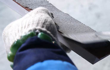 2、用小铲刀将调好的双组份粘接剂在软石背面布浆,满浆率需在80%以上