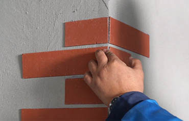 3、先贴阳角后贴大面,挪压软石调整缝宽,最后用胶板拍打使其粘结均匀。