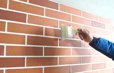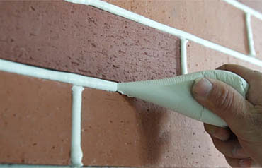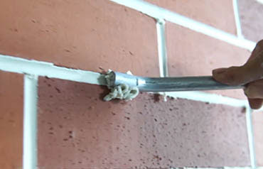 5、等勾缝剂半干后,用弯曲的钢筋头拉出凹缝(钢筋头比缝宽2mm)